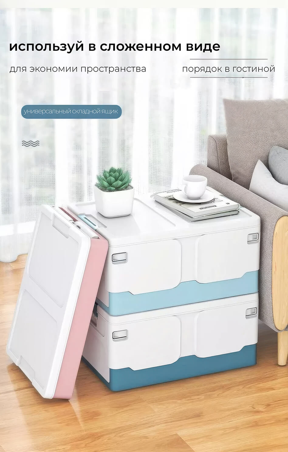 Складной ящик 370х240х240 мм голубого цвета – свежесть, чистота и порядок в вашем доме